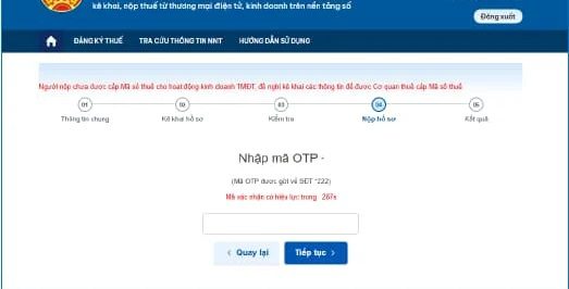 2.3 Người nộp thuế điền thông tin trong biểu mẫu, nhấn “Nộp đăng ký” như trường hợp 1 ; nhập mã OTP để “Nộp hồ sơ”. Màn hình hiển thị Mã số thuế dành cho khai thuế, nộp thuế TMĐT (mã 13 số).